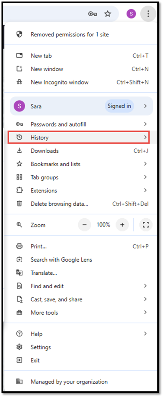 گزینه history  را انتخاب نمایید.